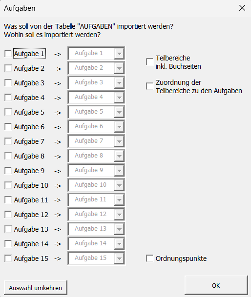 - Ausdruck der erreichten Punktezahl pro Aufgabe und der erreichten Note auf Etiketten für jeden Schüler