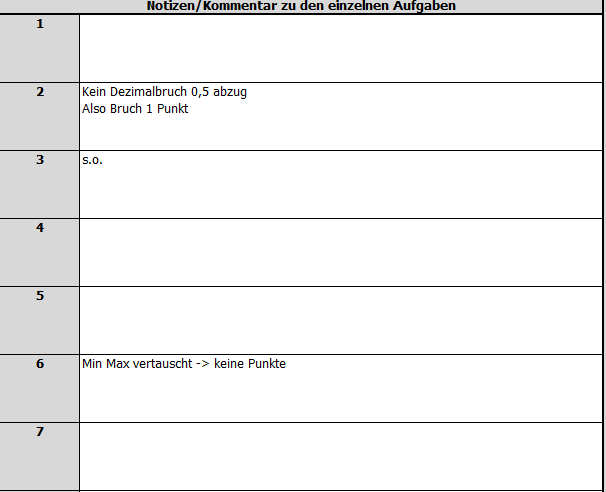 Um den Schülern zu den einzelnen Aufgabe Rückmeldung bei der Rückgabe des Klassenarbeit zu geben, können hier Notizen während der Korrektur eingegeben werden.