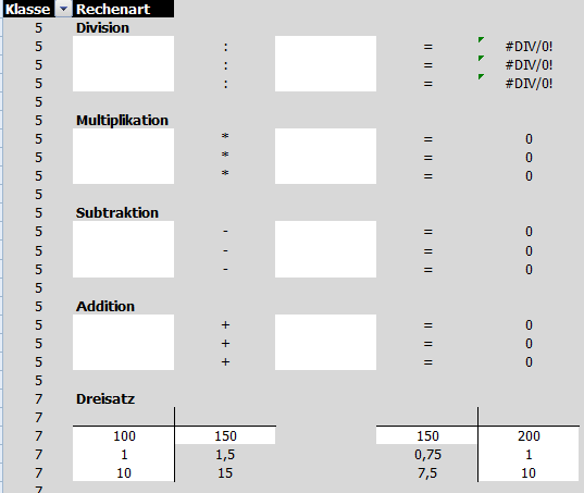 Kleine Rechner zur Unterstüzung um z.B. bei Folgefehlern der Schüler schnell zum Folgefehler-Ergebnis zu kommen.